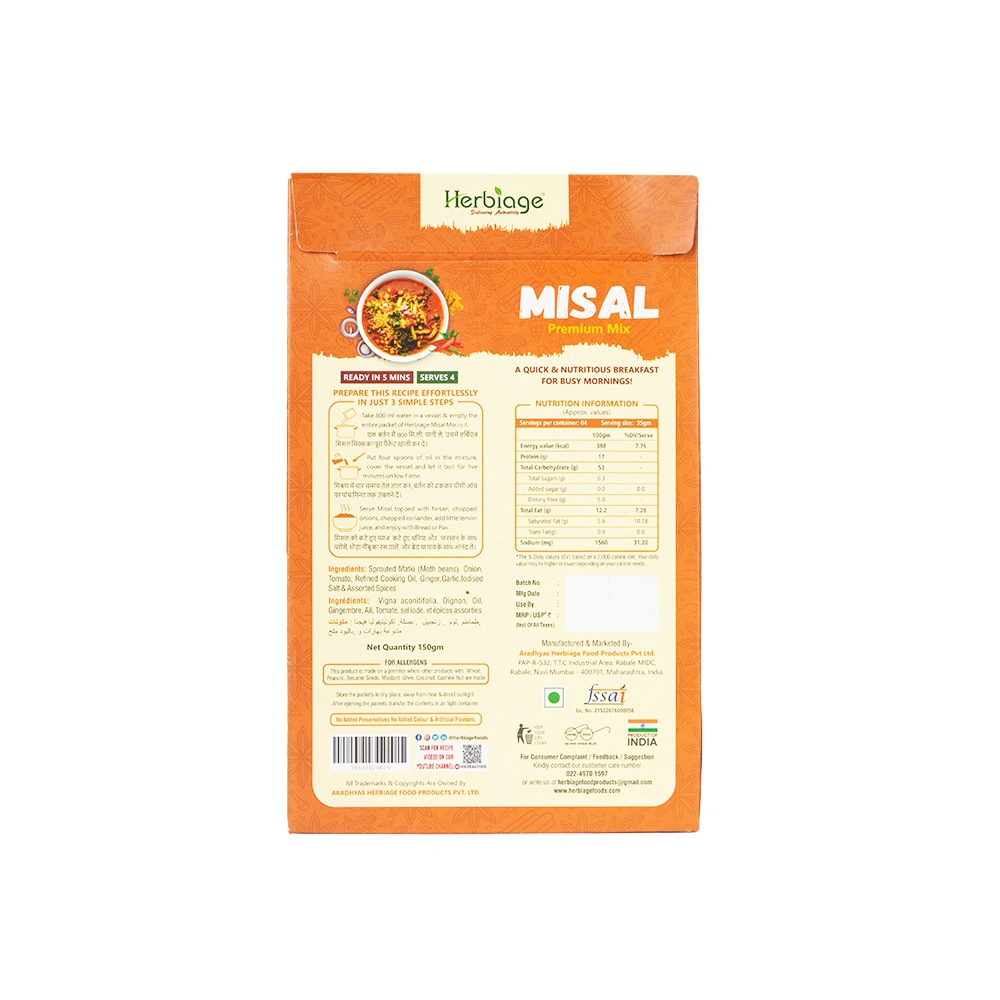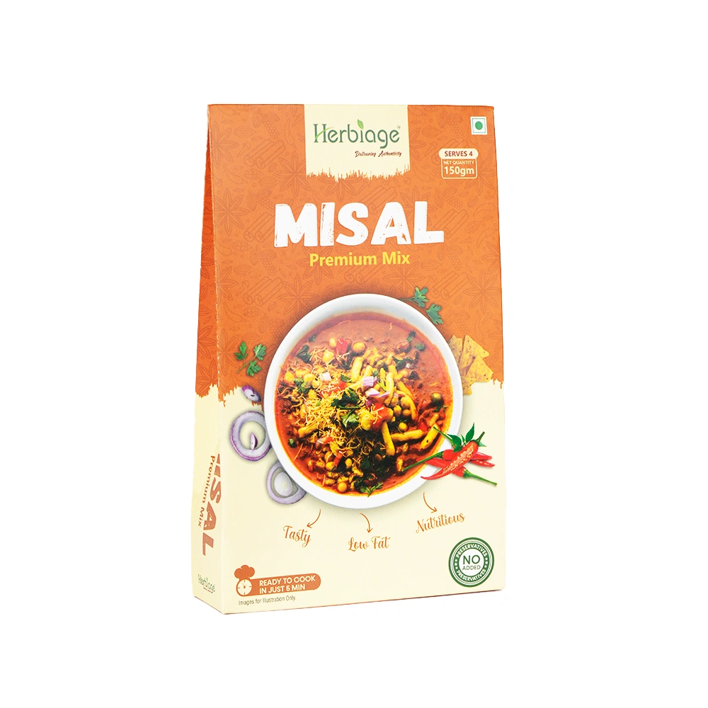 Ignite your taste buds with our authentic Maharashtrian Misal! This classic dish features a fiery and flavorful curry made from sprouted moth beans (matki), simmered in a rich blend of aromatic spices, and topped with crunchy farsan, chopped onions, and cilantro. Ready to eat straight from the pack, it offers an explosion of textures and flavors – spicy, tangy, and utterly delicious. Perfect for a hearty breakfast or a fulfilling snack.